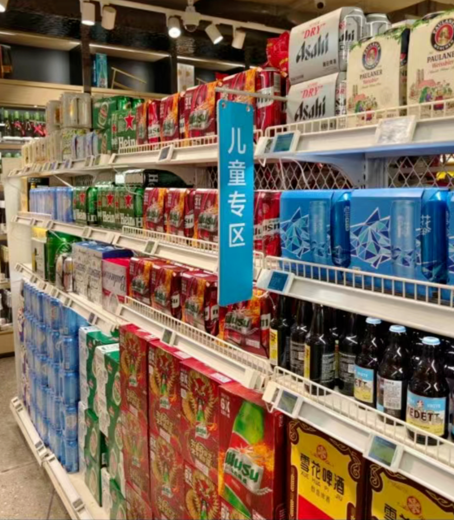 更离谱的是,在儿童专区公然卖起了啤酒。。。。。。