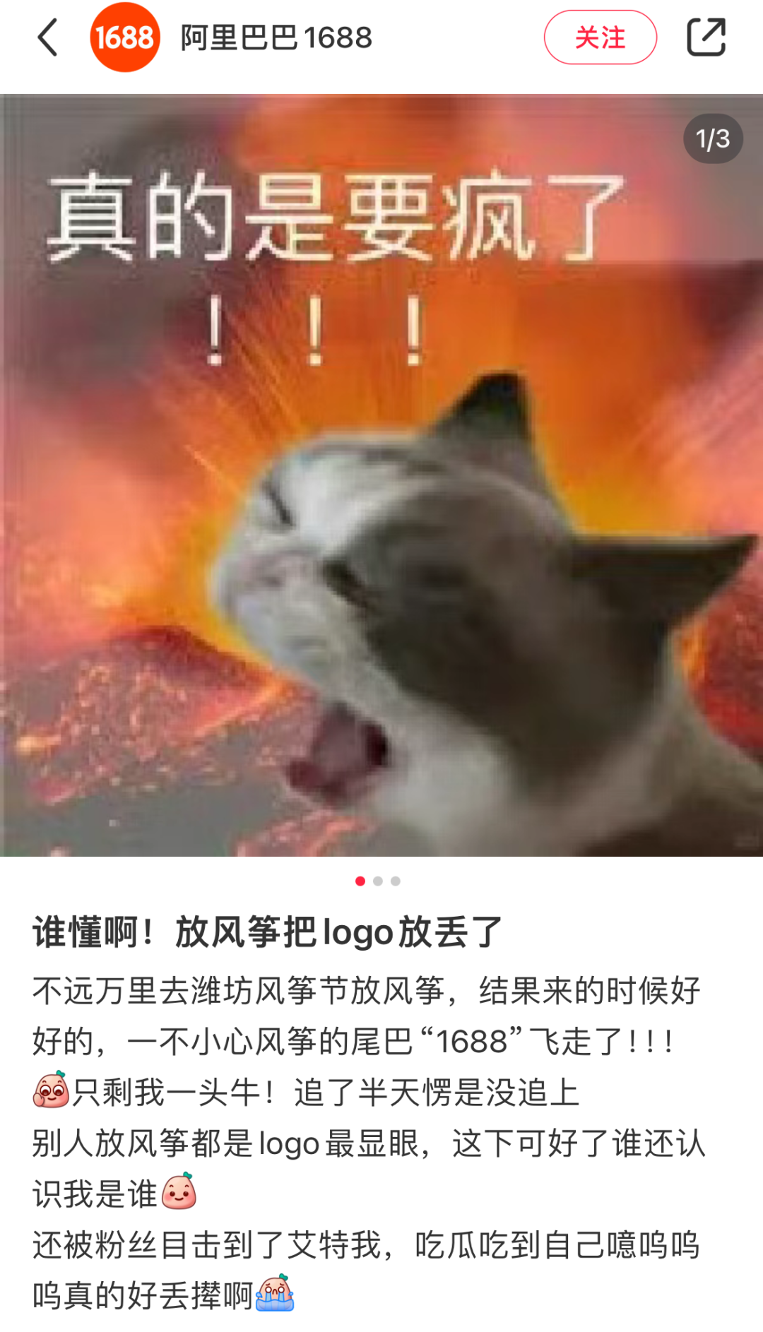前阵子在潍坊风筝节上,阿里巴巴1688弄丢logo在网上发疯,产生强烈的反差感,把网友看乐了。
