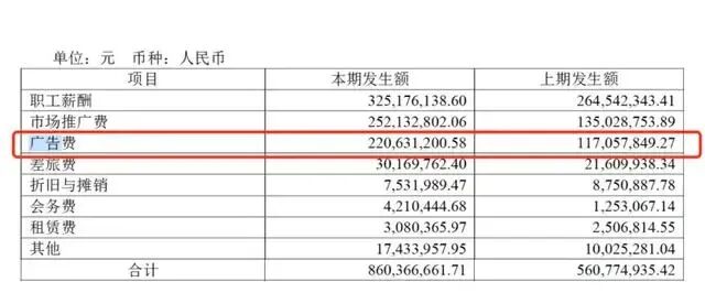 其中仅广告费就高达2.21亿元,较2022年同期的1.17亿元增长88.48%。