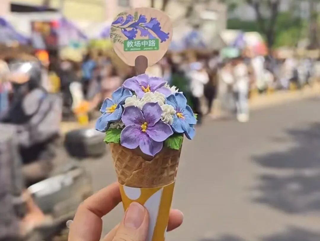 一时间,绣球花冰淇淋成了出圈“利器”。