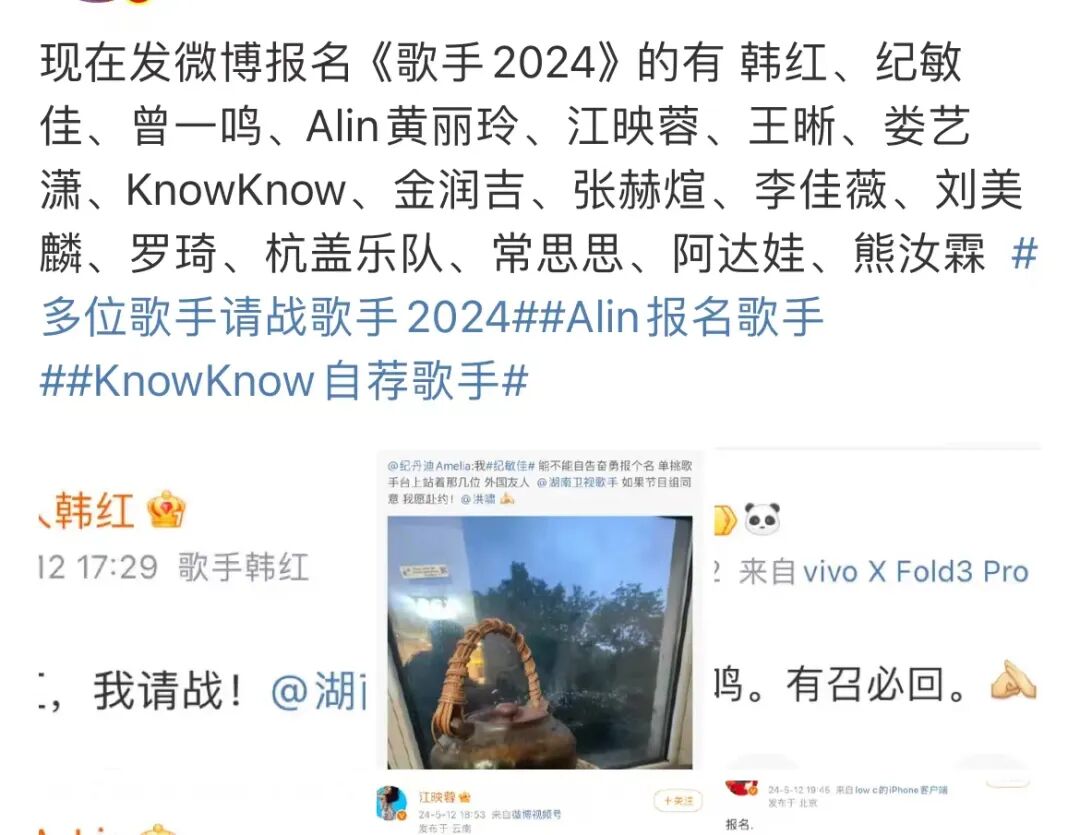 毋庸置疑,歌手盘活了华语乐坛,也让才华横溢的段子手们大展身手,截至开播次日,节目共获全网热搜974个,微博热搜821个,微博主榜TOP10共49个,成为行走的热搜制造机。