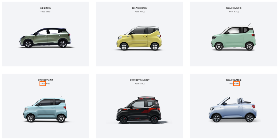 而在多番调整SKU后,五菱宏光MINIEV所覆盖的价格带为3.28万-10.39万元。