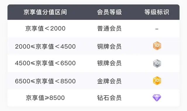 京东则是升级“京享值”体系为“会员等级”制度,通过直观方式展现用户的等级划分和相应的权益。