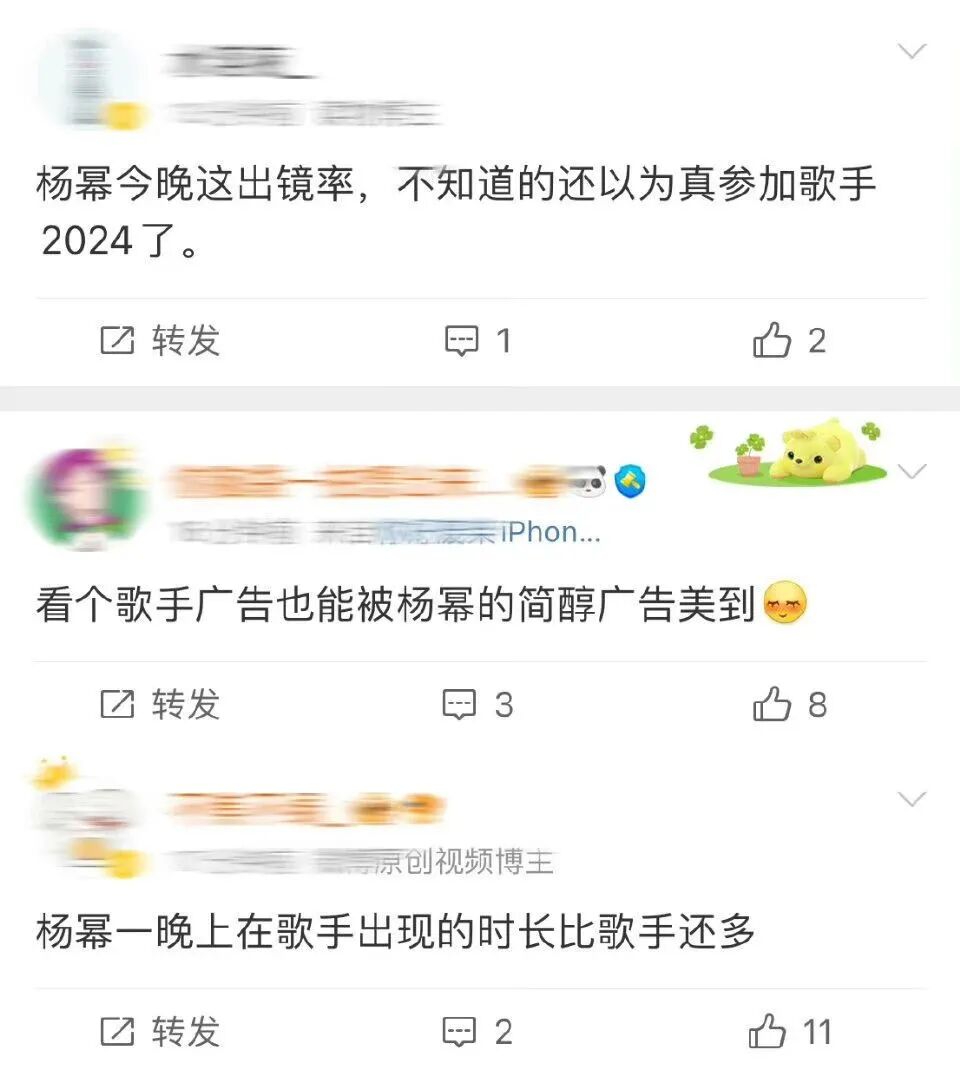 有人表示,杨幂的出镜率,比参加节目的歌手还要高。