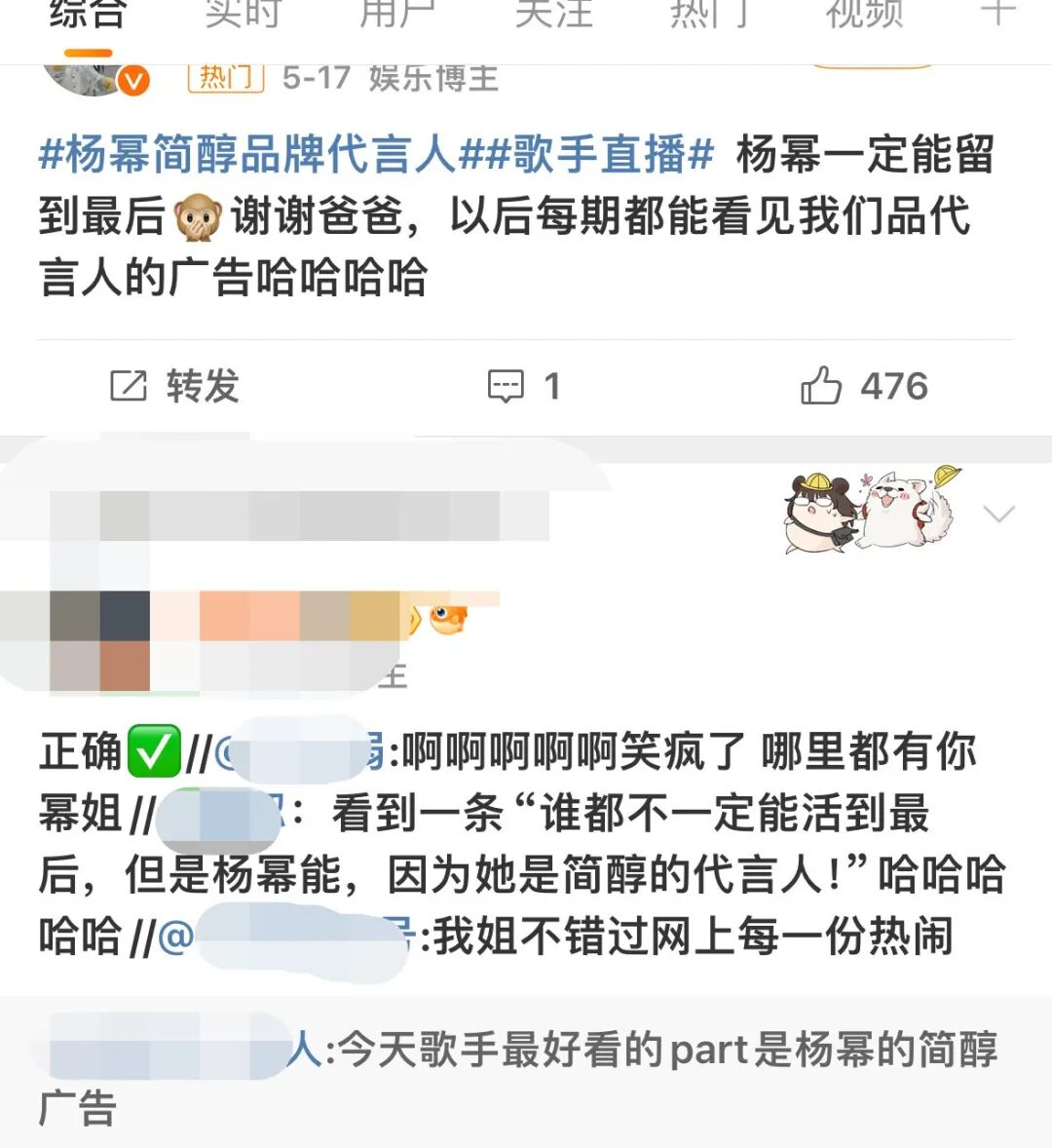 正如曾经爆火的溜溜梅、58同城等杨幂拍摄的洗脑广告,此次简醇带杨幂上《歌手》,杨幂帮简醇赚热度,品牌和代言人之间的双向奔赴、相互成就,有时候就是这么草率但有效。