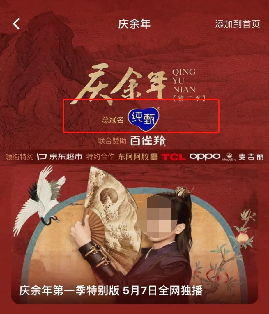 据了解,在《庆余年2》开播前一共宣布了26个品牌赞助方,并且有严格的番位排序,而排在第一位的就是作为“总冠名”的纯甄。