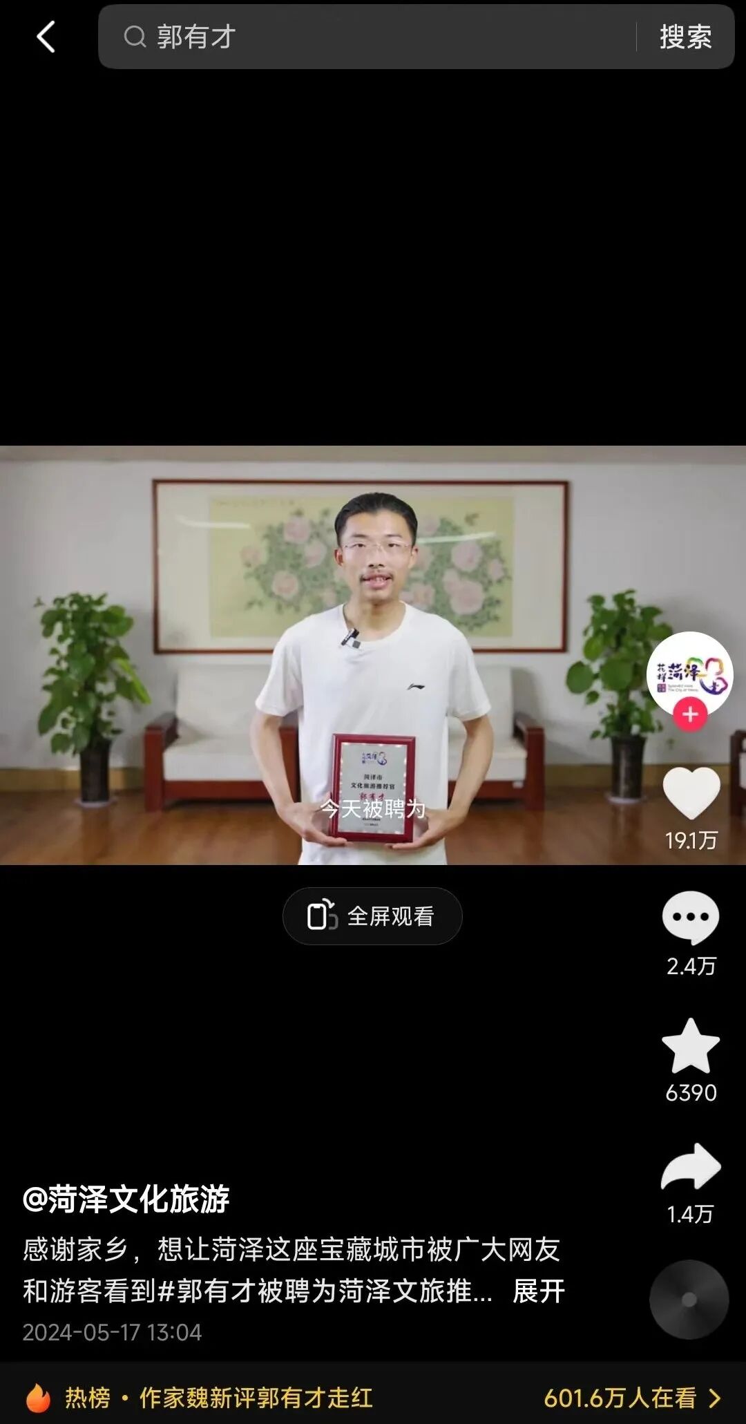 很多人正是因为郭有才才对菏泽这座山东小城充满好奇。