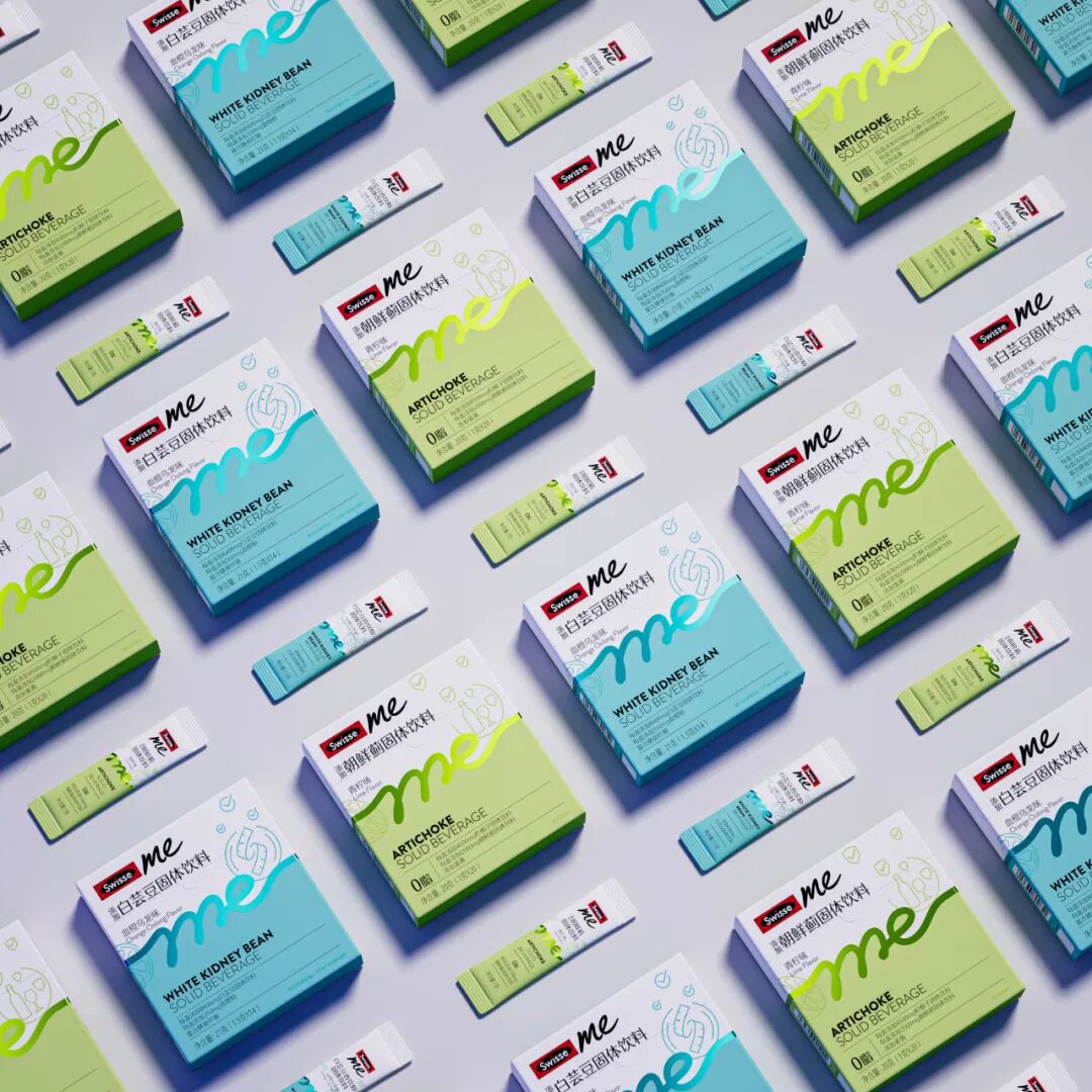 因此,Swisse Me在为年轻人提供健康、低卡、美味、安全高质量的营养食品的同时,在产品视觉上运用趣味的颜色碰撞,呈现年轻、新潮的品牌特点,赋予品牌时尚、醒目、活力、个性,无疑更对年轻人的品味。