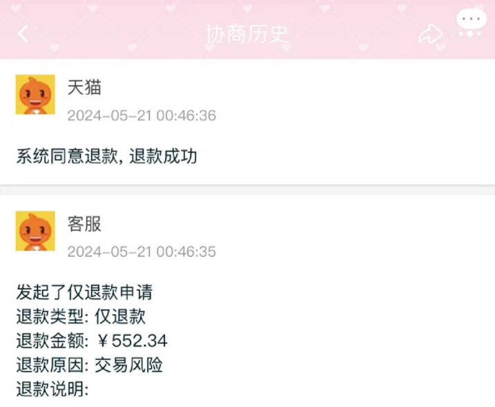 对此,该网友第一时间咨询了淘宝在线人工客服,经过查询发现该订单并不是由商家关闭,而是平台检测到订单异常进行了自动退单处理。