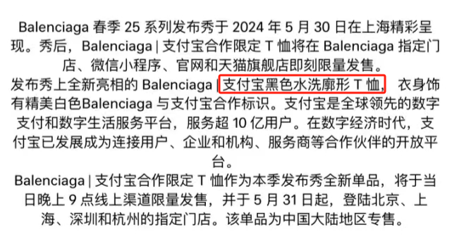 巴黎世家罕见跟互联网巨头——蚂蚁集团旗下支付宝联名。