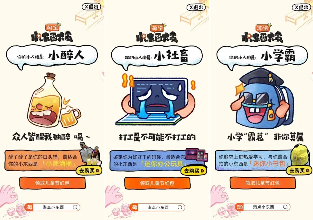 在这个过程中,淘宝也借势六一儿童节打造与年轻用户的情感触点,为年轻人提供萌趣的情绪价值,进一步深化平台自身有趣、好玩的品牌形象,向大众输出平台拥有有趣的好物。