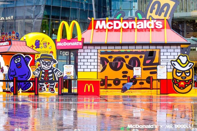 首先麦当劳打造自己的节日超级符号,为此邀请国际艺术家Mr Doodle以麦乐鸡为主题,给奶昔大哥、汉堡神偷、大鸟姐姐重新设计涂鸦形象,实现旧元素新组合,对经典人物形象进行二创增加节日的新鲜感。