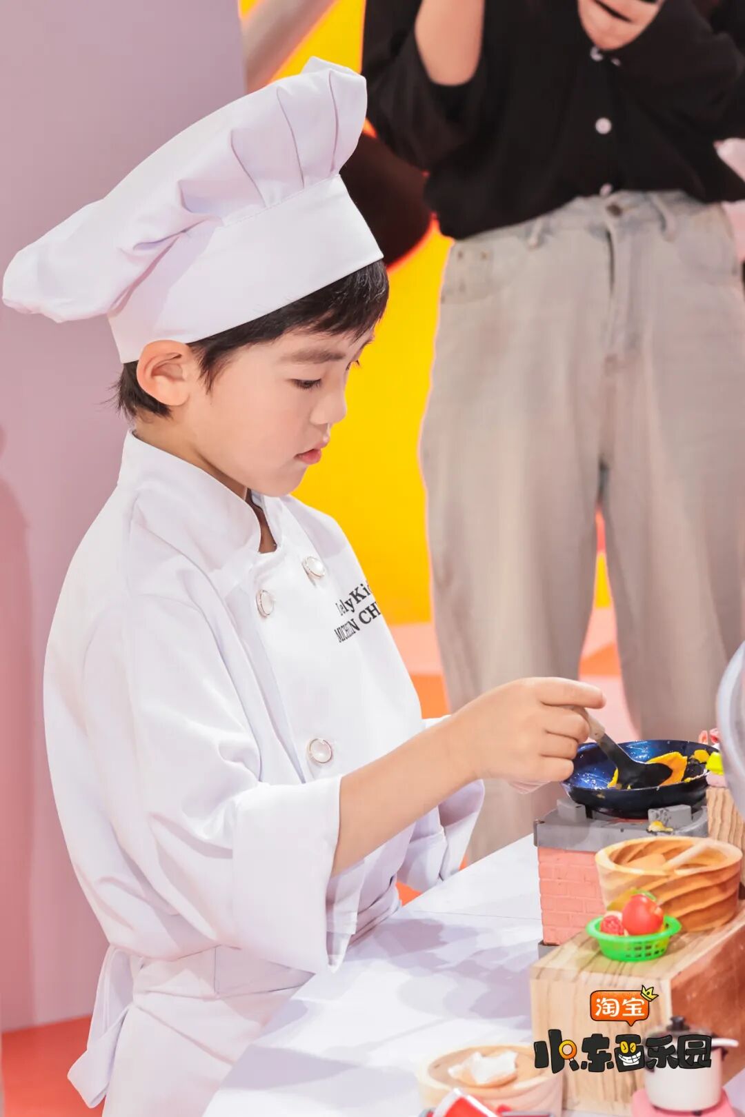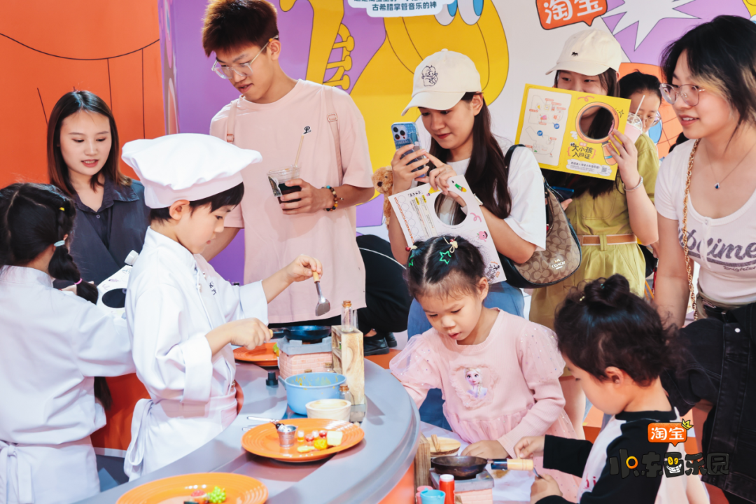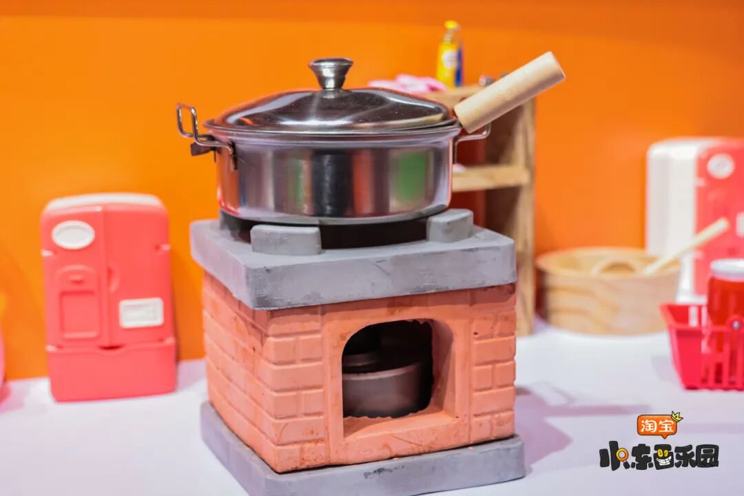 可不要小看每个打卡装置,每一个场景背后都藏着一个小东西故事,大有来头,真可谓麻雀虽小五脏俱全。比如【矮尔夫球场】,是来自淘宝高尔夫的宝宝「矮尔夫」,唉哟这杆不错哦;【这像画吗小画展】出自淘宝的「挂画幼崽」,某多是买大发小,淘宝是小亦顶流;还有【小厨房盛宴】,这可是真的可以煮的厨房,对小朋友来说有点幼稚,对大朋友刚刚好,在小灶台小电饭煲之间,感受柴米油盐酱醋茶的小乐趣。
