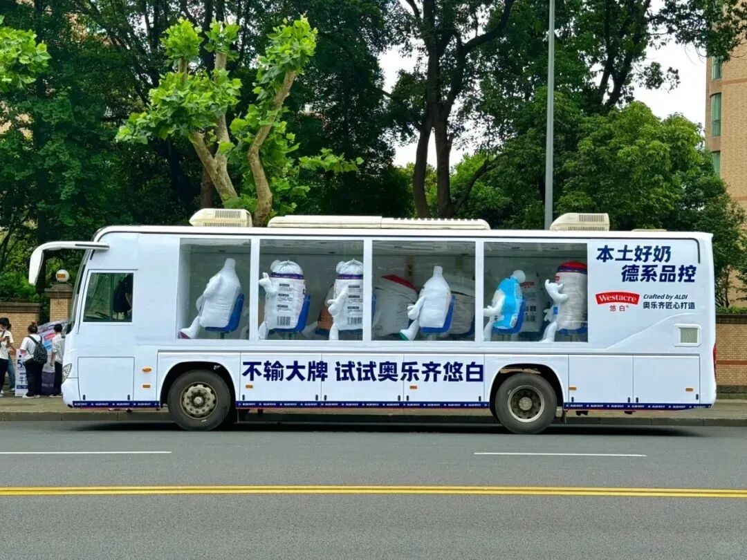 这两年“商战”成了爆火的营销热词,什么时候玩都不为过,这不最近平价社区超市ALDI奥乐齐,为推广自家的牛奶品牌悠白,居然发起了一场炸裂的大巴巡游营销。