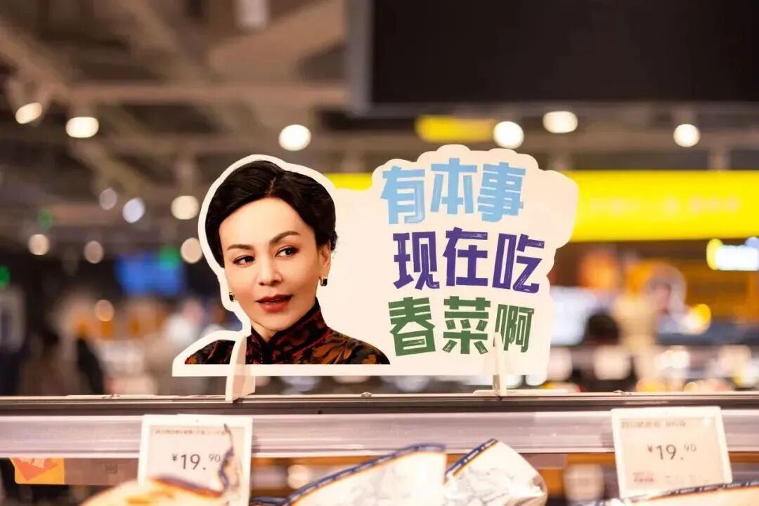 除此之外,奥乐齐还试过对雪姨表情包进行二创,做成商场里的巨型表情包打卡装置,进行场景化传播。