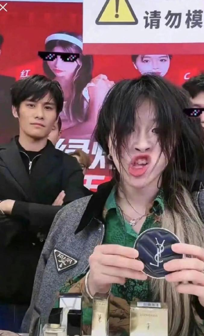 比如说小杨哥徒弟“红绿灯的黄”,她原本是三只羊带货情况最好的徒弟,但去年双十一大促期间,她带货圣罗兰气垫的时候,披头散发,面部狰狞,甚至一度叉开腿蹲在了桌子上,看上去非常不雅观。