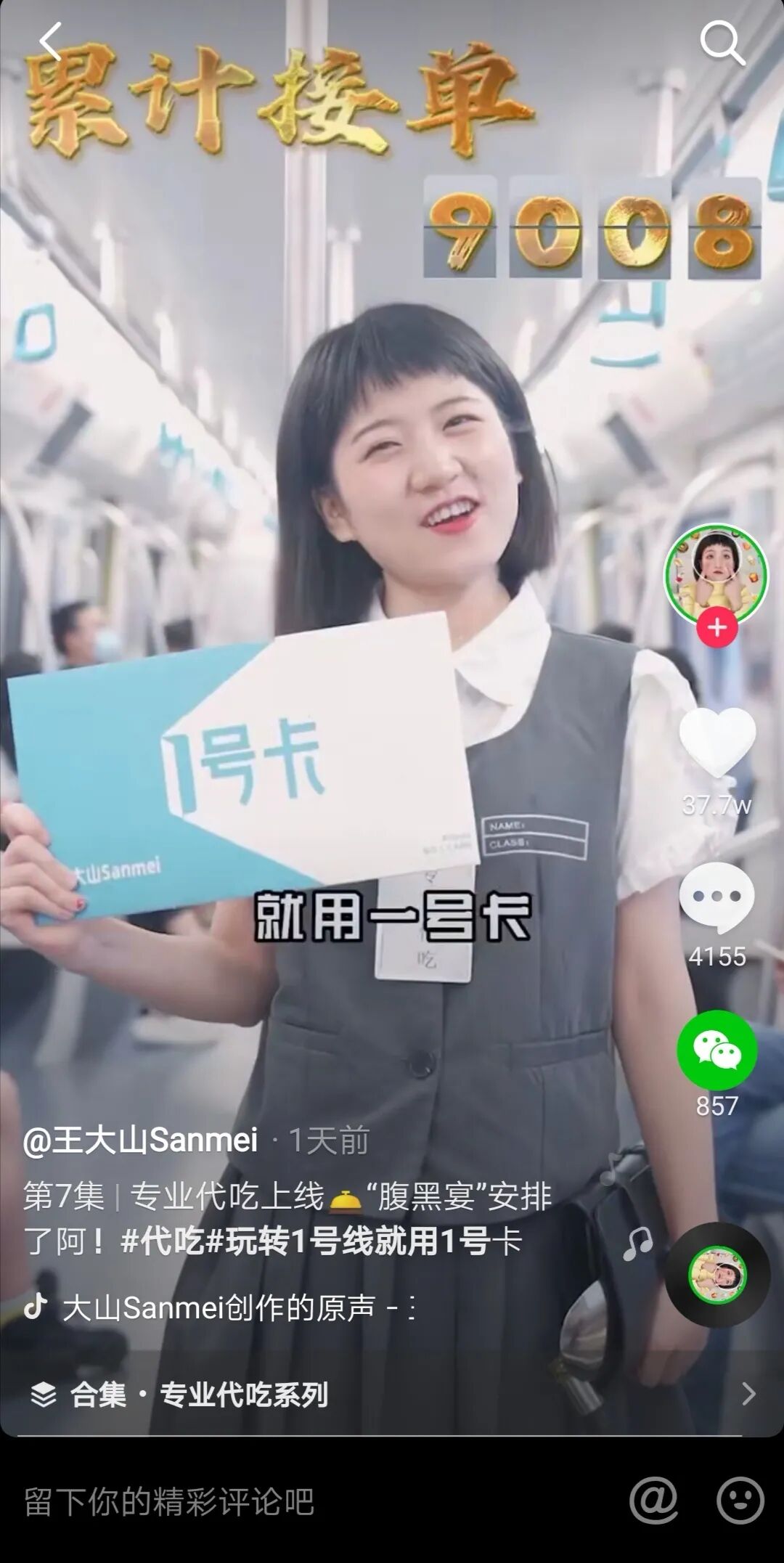 支付宝联合上海、杭州、天津、南京、成都多个城市抖音红人,前往当地1号线进行Vlog拍摄,聚焦出行、美食、奶茶、看电影、骑单车等场景,用更加魔性、更具网感的演绎,传达「1号卡」权益,在抖音上引发了更多年轻人的关注,让「1号卡」“为生活带来快捷与便利”的心智更加深入人心,带动更多人对「1号卡」的认可与喜爱。