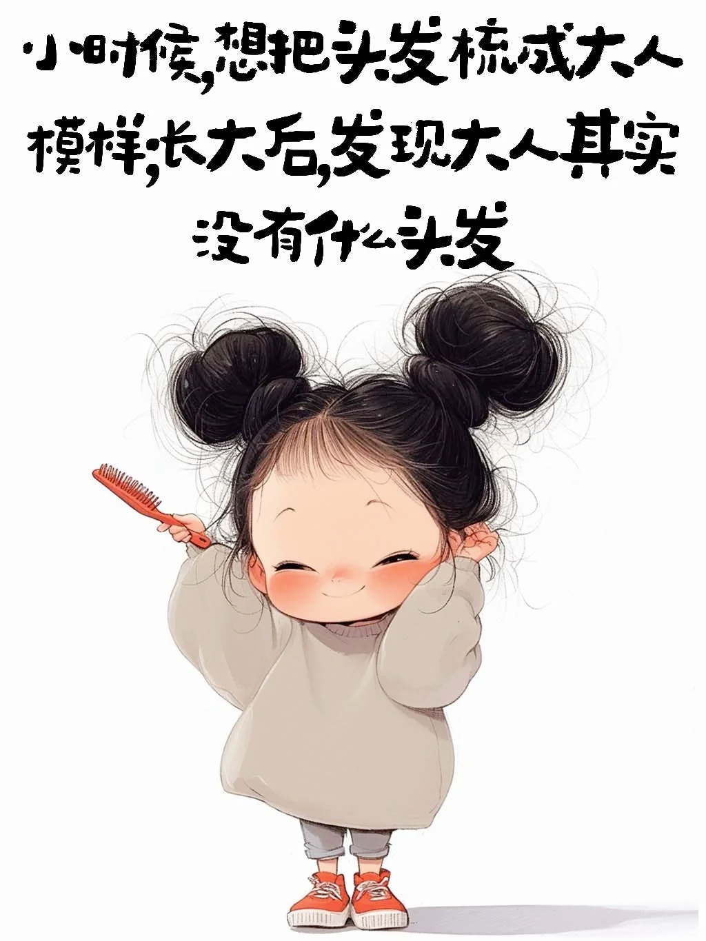 小时候想把头发梳成大人模样,