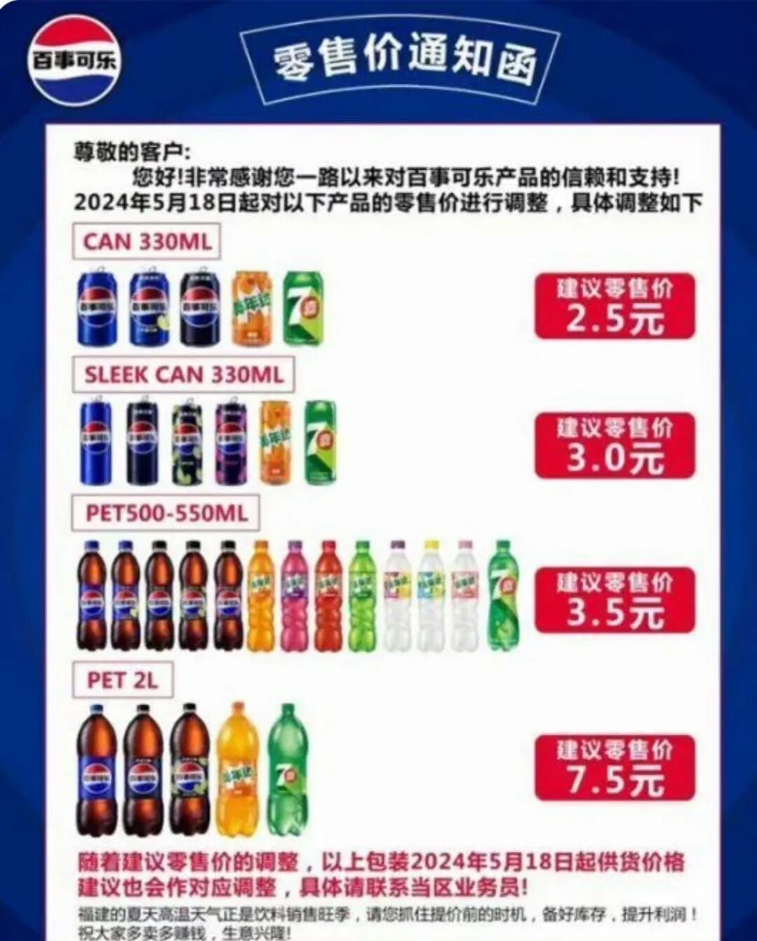 最近,一份有关百事可乐公司饮料产品的“零售价调整通知函”在业内和网络广为流传。