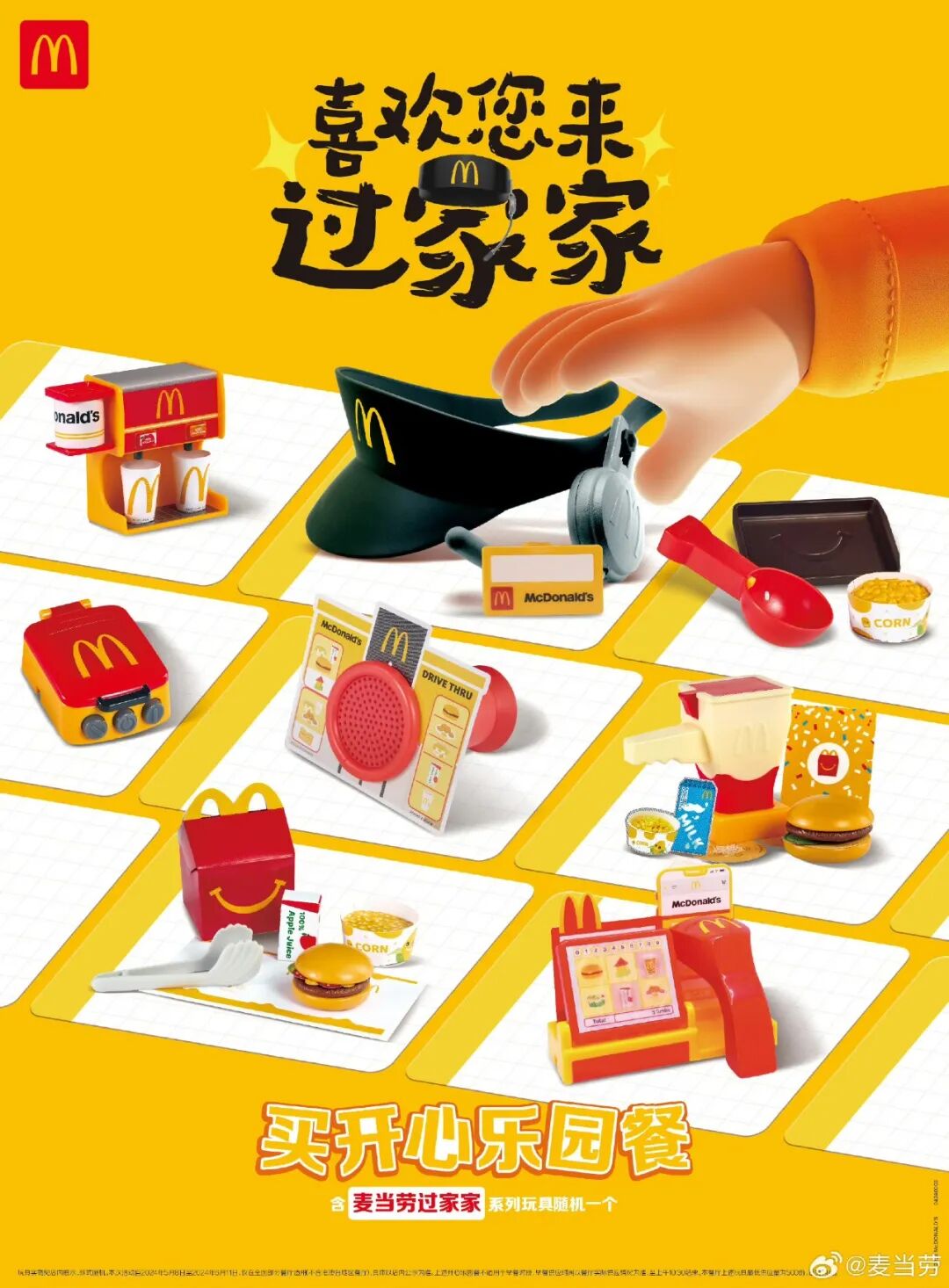 而广为人知的麦当劳过家家系列玩具,从麦门打工帽、烧烤机到收款机,让人沉浸式体验“点餐、备餐、上餐、收款、外送”的全流程。
