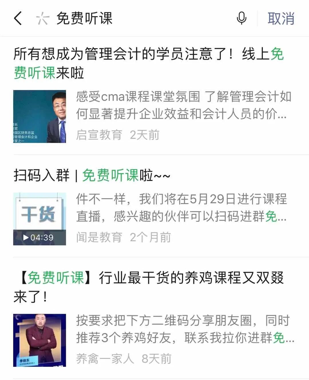 很多知识付费教育产品也都选择了这种微信群裂变的玩法,作为推广获客的核心手段,其中不乏英语课、心理课、会计课……都在采用这种方式快速地野蛮生长。
