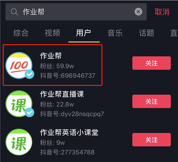 很多教育品牌都在抖音、快手等平台上开启了蓝V号,其中“新东方家庭教育”抖音粉丝量达到了174万,“作业帮”的抖音粉丝量也达到了59.9万。