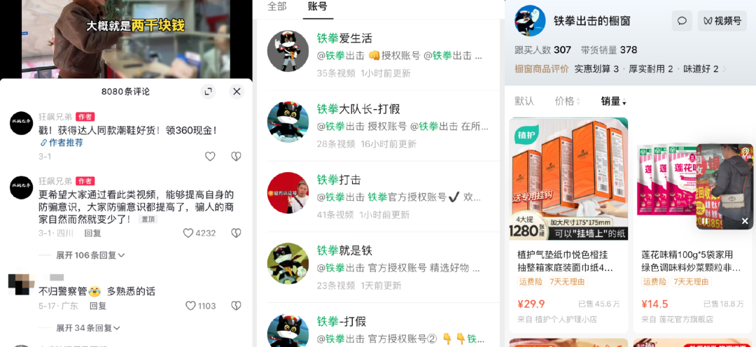 博主“黑白一二”和“铁拳出击”发布的打假视频