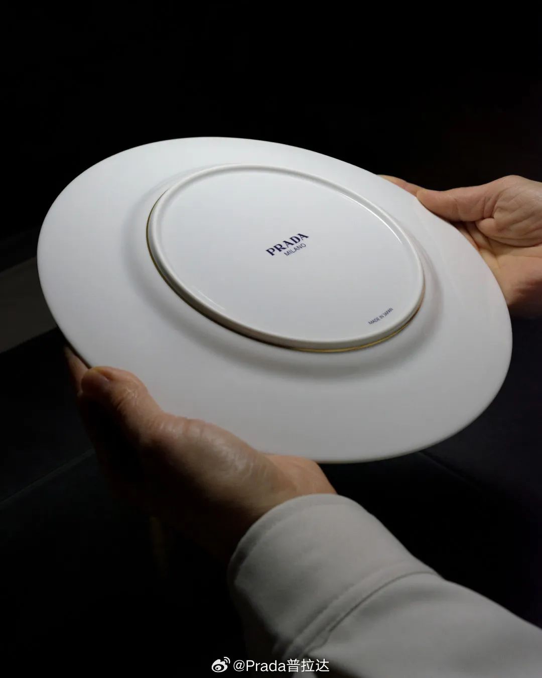 透过Prada发出的微博可以看到,Prada带上话题#Prada家居#宣传青瓷系列产品,配合发了四张图,进行了一顿科普。