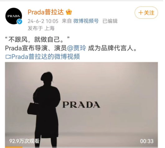 Prada好不容易悟了,找代言不能把明星当唯一。于是尝试跨界到体育界电影界,官宣女足和贾玲,好不容易帮自己扳回了一局。
