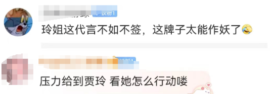 品牌与代言人是相互影响,品牌一出现风吹草动,代言人势必也躲不过牵连,网友把压力给到了贾玲。