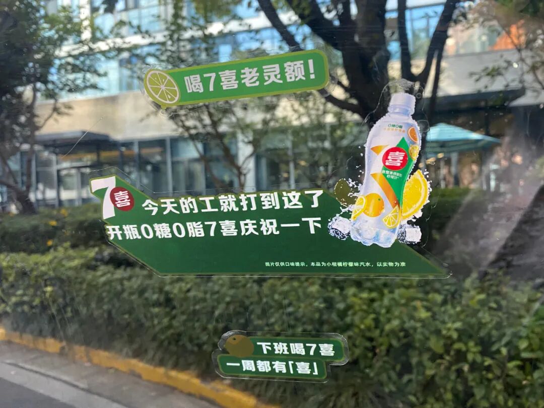 从7喜的产品角度来看,多数白领上下班通勤都有一个消费习惯,就是顺便去便利店买饮料,而0糖0脂7喜好喝到飞起、清爽无压力的产品定位,与白领人群追求解压的消费特点高度契合。