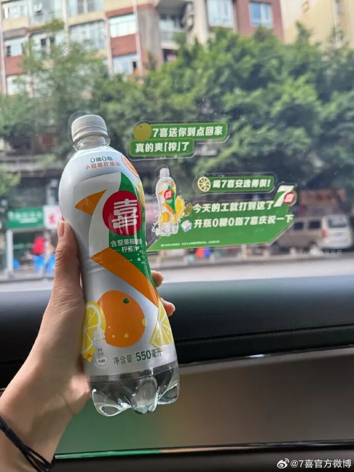 在味觉营销上,7喜在专车内提供7喜饮品,解锁用户的解渴需求,提供及时的饮用体验,让“爽榨”变得触手可及。