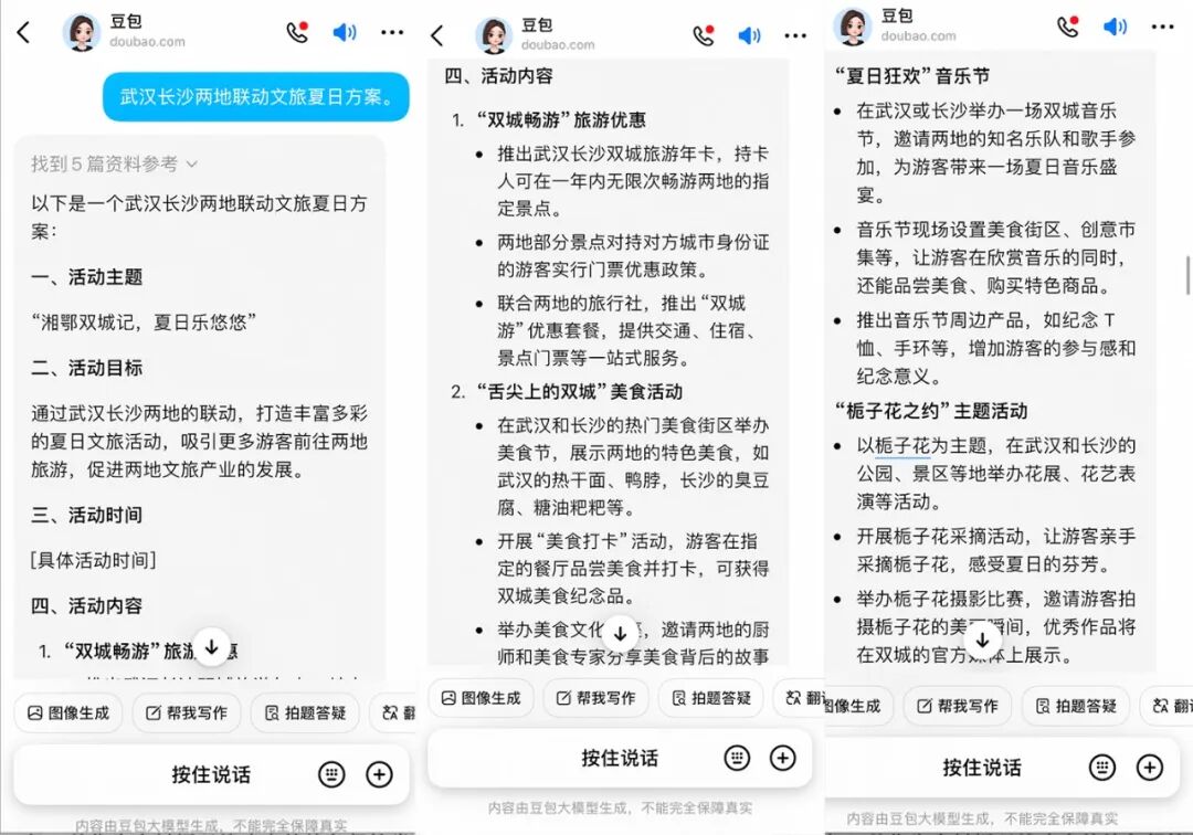 当甲方2点下单,要求在下班前给出一套“武汉长沙两城联动”文旅策划方案,希望能提供一些可行有创意的点子。当听到这样无理的需求后,无需暴躁,将指令下到给豆包即可。