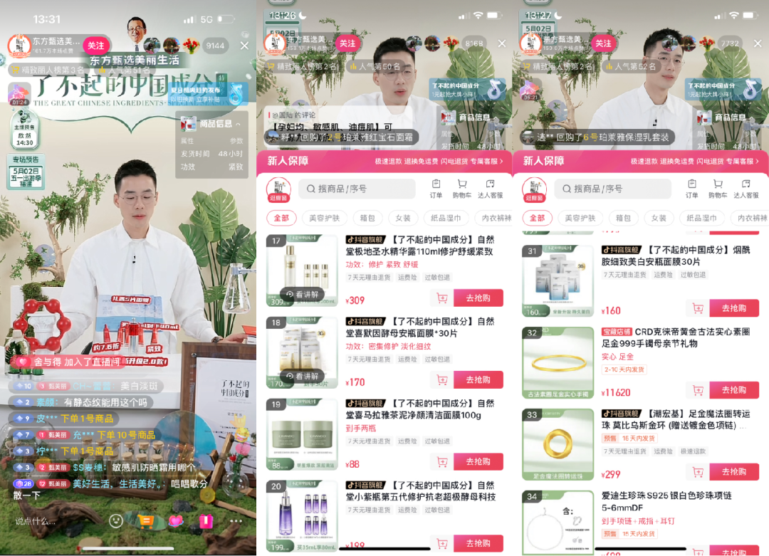 下单“临门一脚”由热门头部直播间东方甄选美丽生活来完成。主播顿顿发挥应有的带货实力,对自然堂产品进行了深入浅出的讲解,帮助用户在愉悦情绪中完成下单。