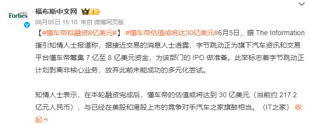 懂车帝即将奔赴IPO的消息,主要源自国外科技媒体The Information的报道。