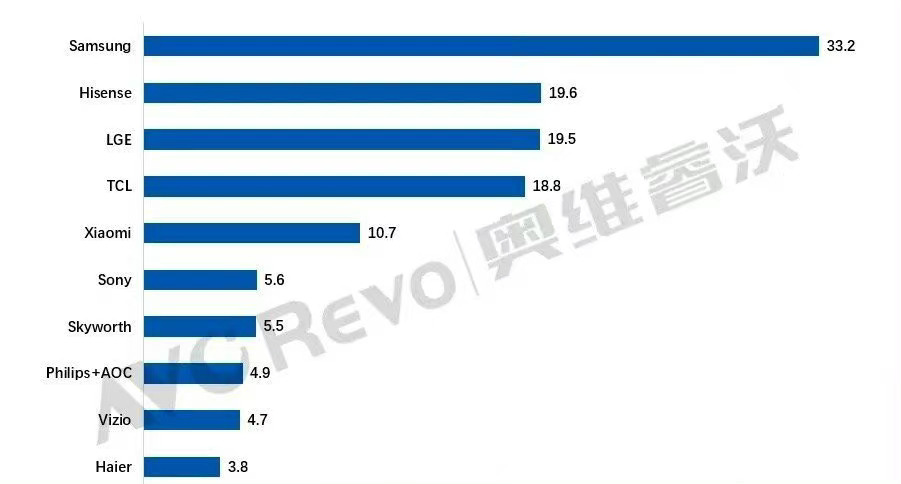 根据权威市场调研机构Omdia发布的2022年全球TV出货量数据,三星排名第一,海信跃居第二,TCL、小米分列第四和第五位,中国品牌在TOP5中占据3席,全球彩电业格局重新改写。这是自1958年中国第一台国产电视机以来,中国电视企业首次实现年度出货量位居全球第二。
