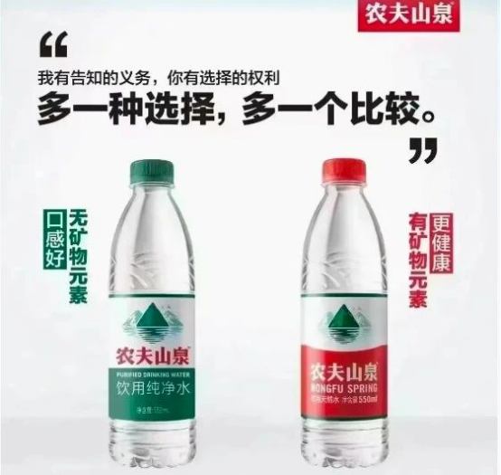 另一个对手是农夫山泉。他们最近悄悄推出了绿瓶装的纯净水,直接打进了娃哈哈的老巢。农夫山泉的钟睒睒在2023年的股东大会上说,24年前他们放弃了纯净水市场,转而做天然水,是因为觉得天然水更健康。但24年过去了,纯净水市场依然占了一半份额,农夫山泉也看到了消费者需求的多样性,所以决定重新生产纯净水,再走一回老路。随着绿瓶纯净水的上市,农夫山泉还打出了"多一种选择,多一个比较"的口号。考虑到农夫山泉在瓶装水市场上的强势地位,宗馥莉和娃哈哈面临的压力可想而知。