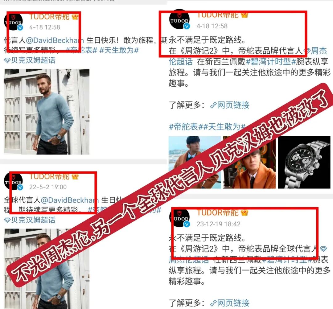 帝舵微博给周杰伦、贝克汉姆两位全球代言人“降级title”,模糊代言人等级,无疑是违背了品牌的契约精神,引发粉丝集体维权也是意料之中。