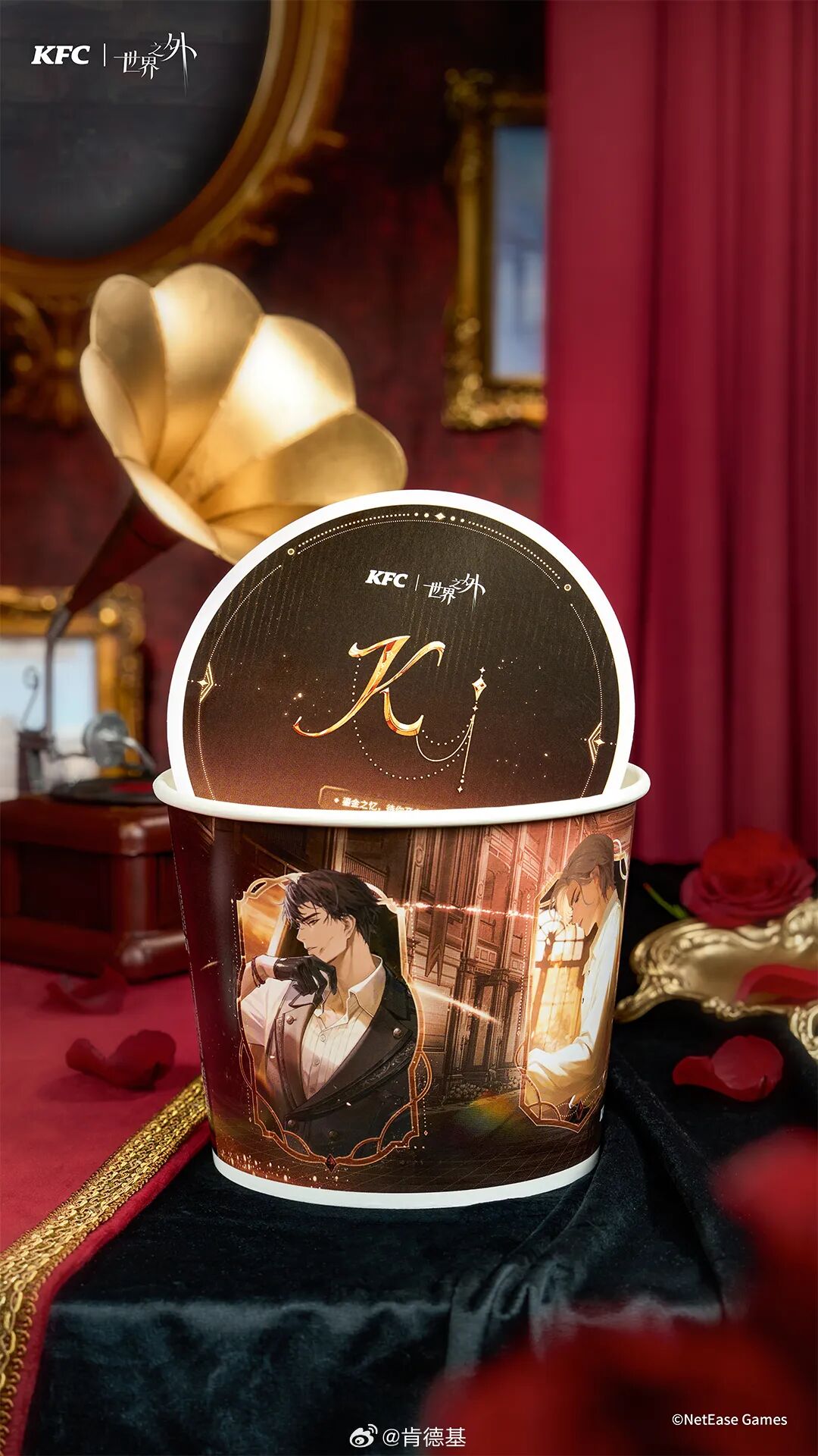 肯德基与世界之外的联名备受粉丝期待,这次联动主题「鎏金故梦」,特别为此定制了鎏金风桶身,吃炸鸡也能豪华起来,带你一秒穿越K庄园的宴会。