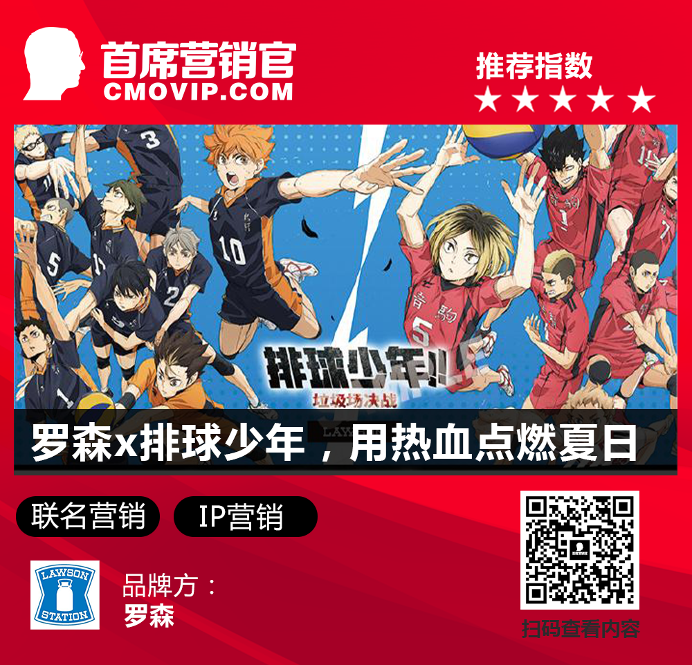 点评:《排球少年!!垃圾场决战》点燃了这个夏天的热血青春,这次罗森的联动也备受粉丝期待,利用该动漫的故事性为消费者打造场景价值,从而为门店增加了客流量。