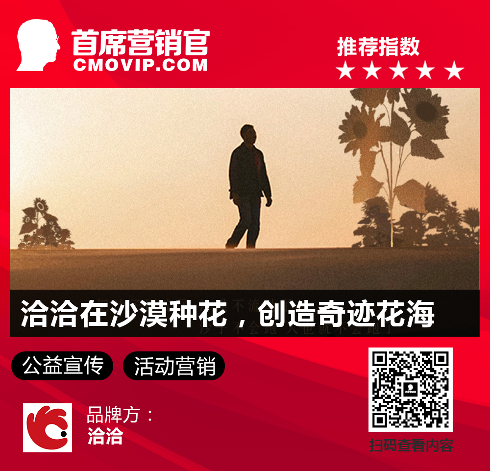 洽洽联合新华网前去沙漠里,邀请大家共赏沙漠中的希望之花,并上线公益宣传片《沙漠开花》,努力创造沙漠奇迹。