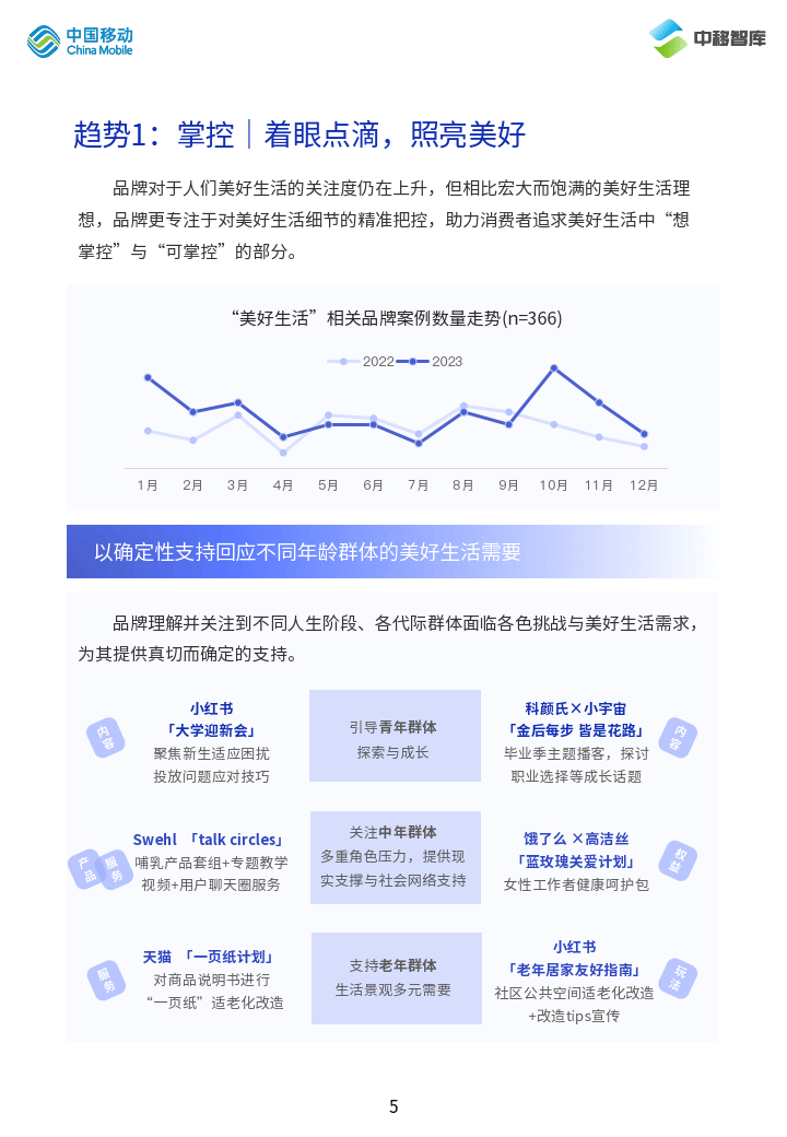 消费者对“美好生活”的定义正发生转变,从宏观理想转向微观细节的追求,品牌需着眼于生活点滴,为不同年龄层的消费者提供具体而实际的支持。例如,小红书推出“大学迎新会”专题,帮助新生解决适应难题;而针对中老年群体,品牌通过“一页纸计划”、“老年居家友好指南”等项目,改善生活便利性,传递出对细节的关怀。