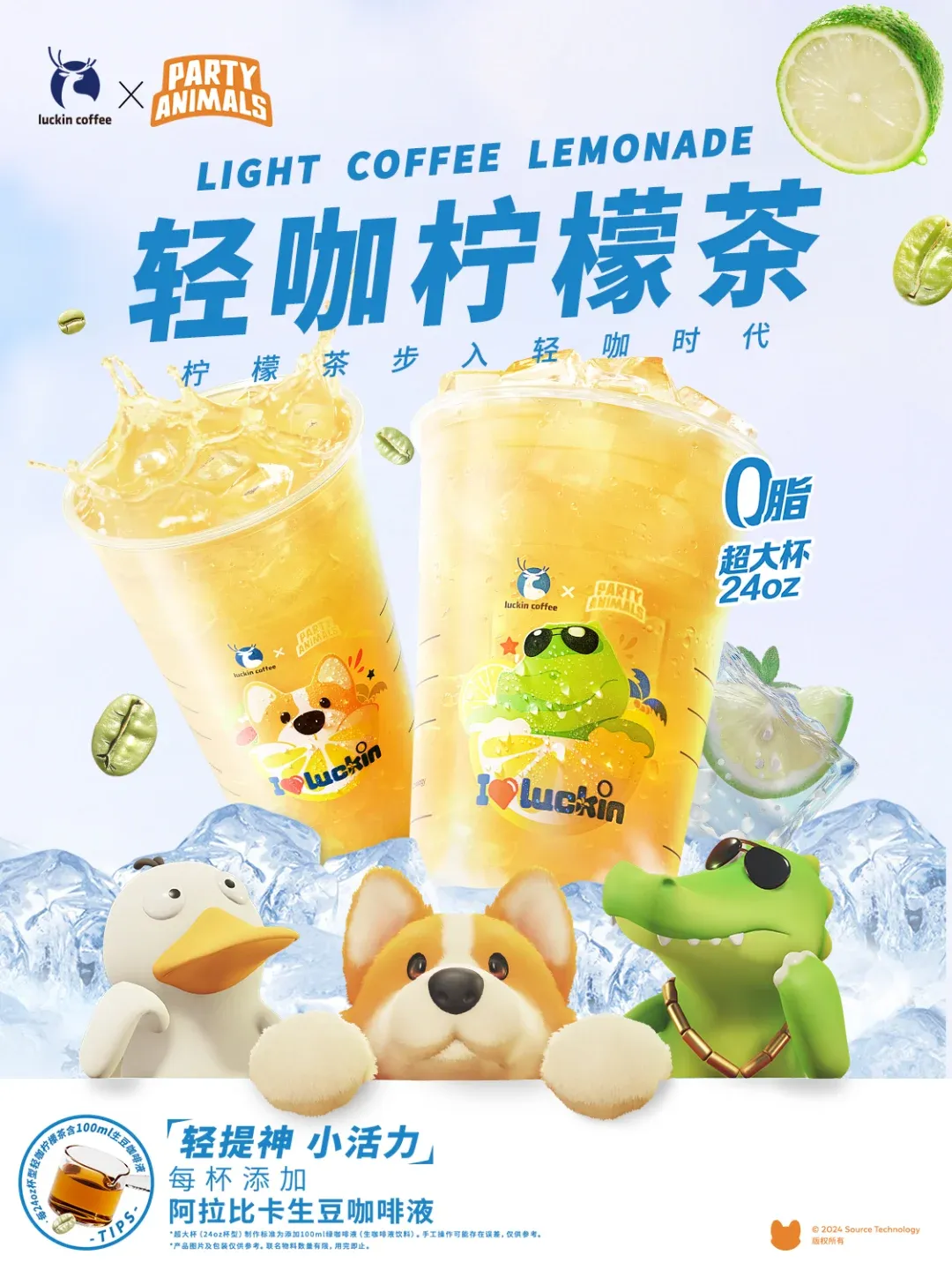 最近,“联名狂魔”瑞幸有了新CP,联名猛兽派对IP,推出新饮品轻咖柠檬茶。