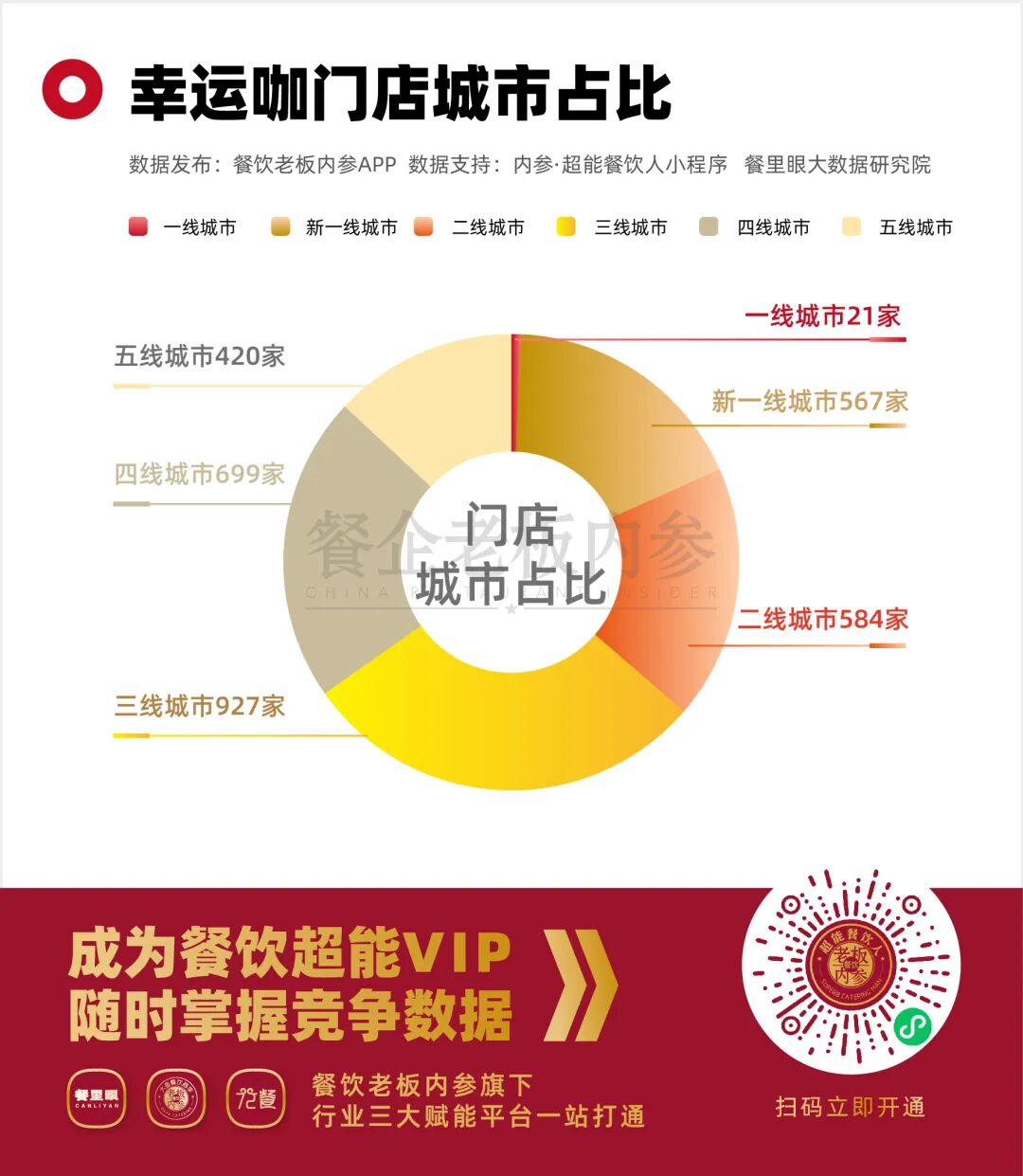 没有谁比蜜雪冰城更懂下沉市场。如果有,那也只能是其亲手打造的“另一个自己”。尽管如此,从体量上来说,幸运咖当前规模还不及预期:到如今,在国内咖啡赛道中,幸运咖的门店总数排在第四位,与排行前三的瑞幸、星巴克、库迪相比,门店数量和市场份额还有较大增长空间。