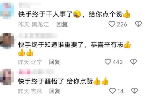 快手主动邀请辛巴这一举动引起了网友的激烈讨论。多数人认为:“快手终于干人事了”“快手终于知道谁重要了”“快手终于醒悟了”。