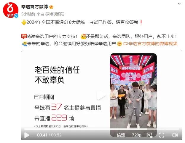 辛选集团透露,截至6月18日,辛选年中庆共安排直播229场,总带货商品数量近4000万单,直播间总人气4.28亿。