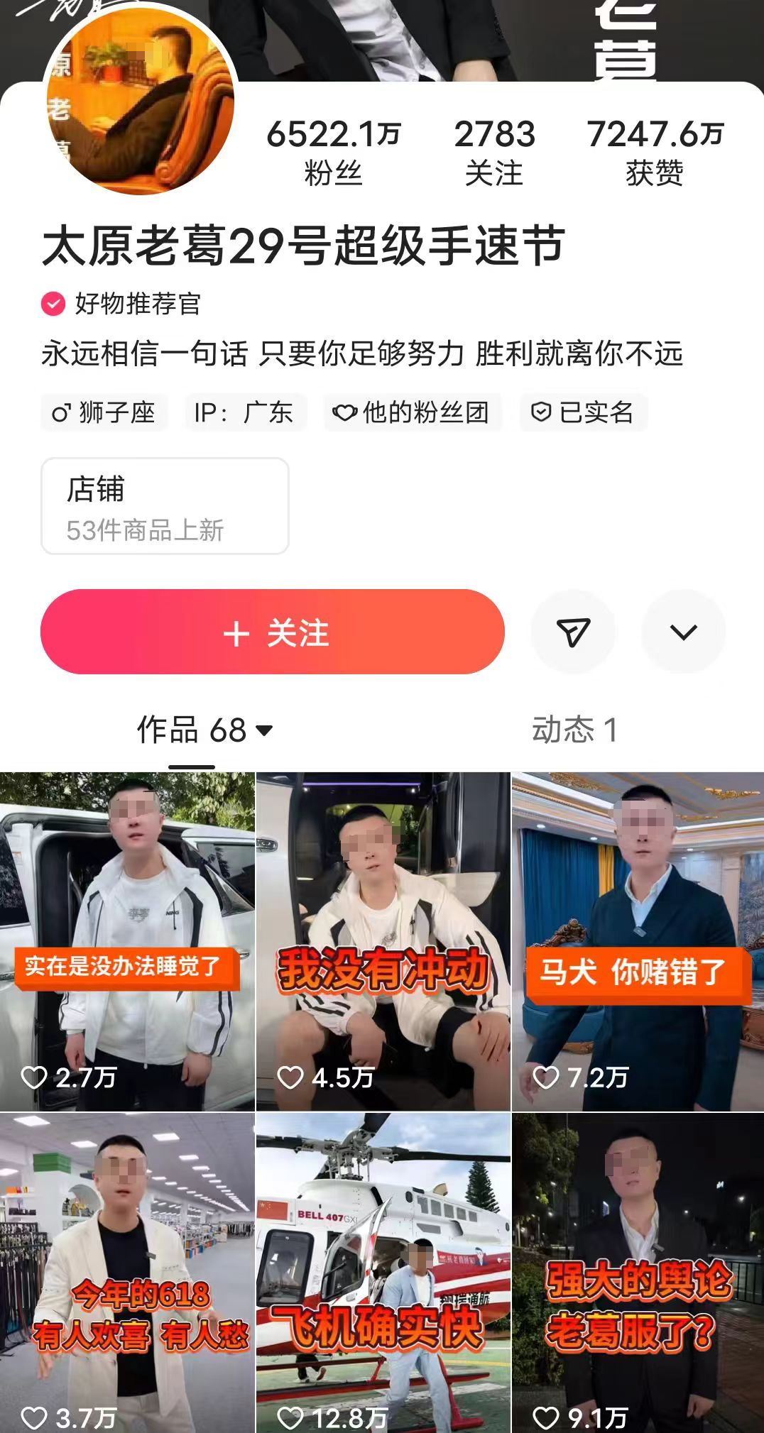 公开资料显示,太原老葛,真名葛亮,早在2015年就开始进行直播,当时直播形式以PK为主,2019年9月曾因涉及低俗、恶意炒作,被快手封号两年。2021年账号解封后,太原老葛开始在快手进行直播带货,并一跃成为快手的头部主播。