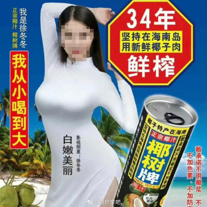 要知道徐冬冬代言椰树多年。