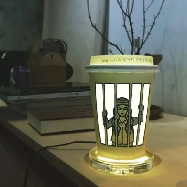 这一次,星巴克又将完整造型的美人鱼造型只露出头顶和眼睛,品牌色则由原先的草绿色变成金黄色和深绿色的搭配组合,突出头顶黄色的星星。
