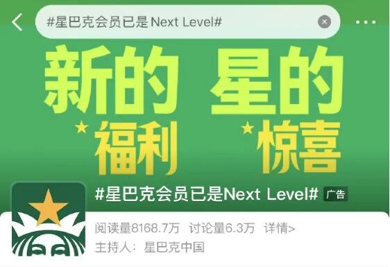 星巴克此次更新APP的logo,正是为了宣传星巴克的全“星”升级主题“星享俱乐部”,以会员积星来兑换指定产品。